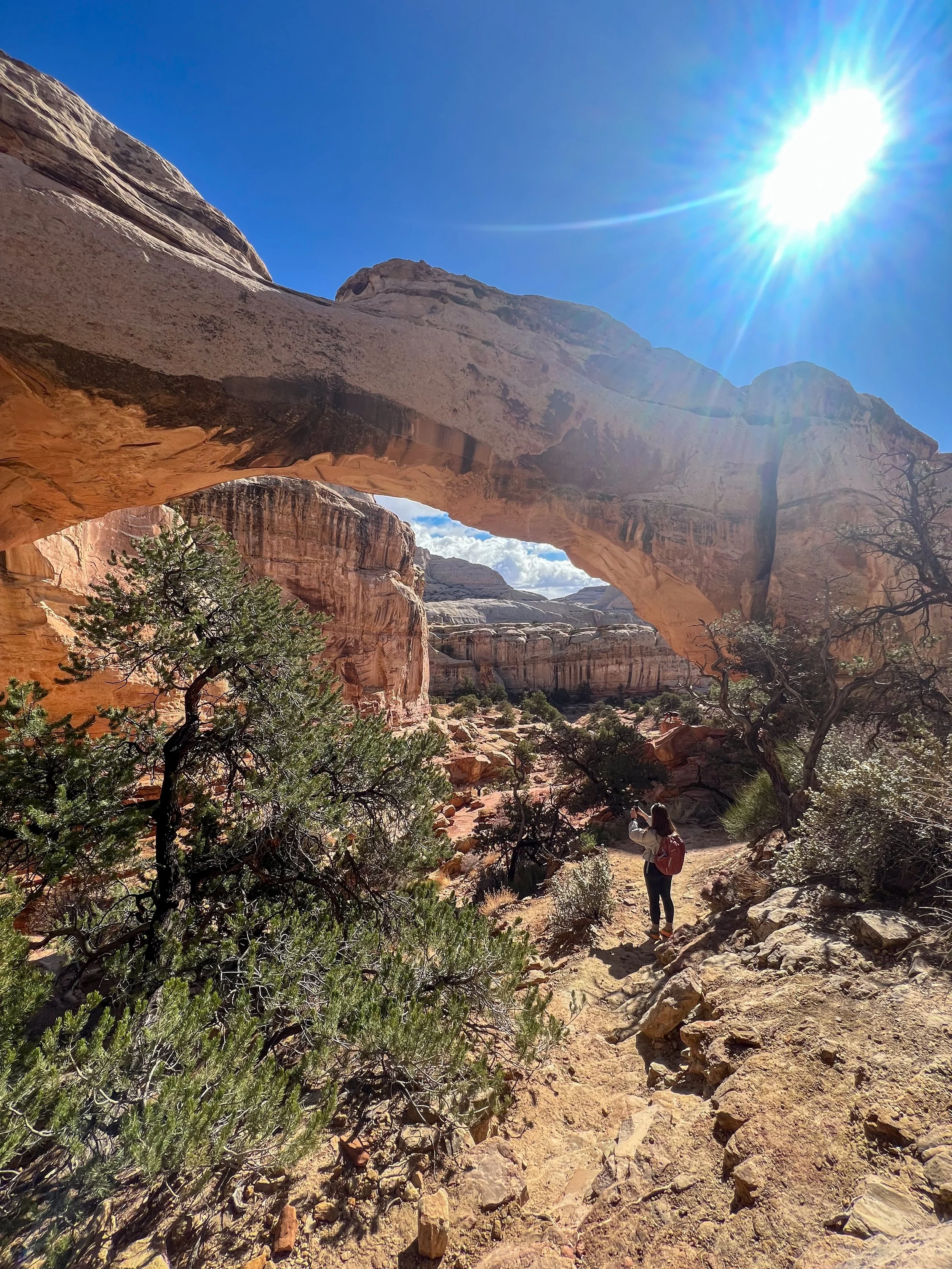 This might be our favorite park in Utah in terms of diversity of hikes! Here, you can visit arches, walk through slot canyons, drive scenic roads, and even grab a famous fruit pie!